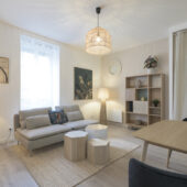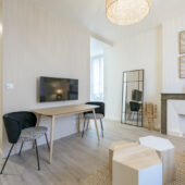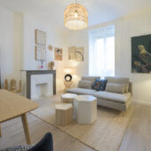 Un appartement (plutôt un plateau ;p) de 42 m2 a été rénové pour en faire un T2 meublé haut de gamme, finalement loué 950 € hors charges.